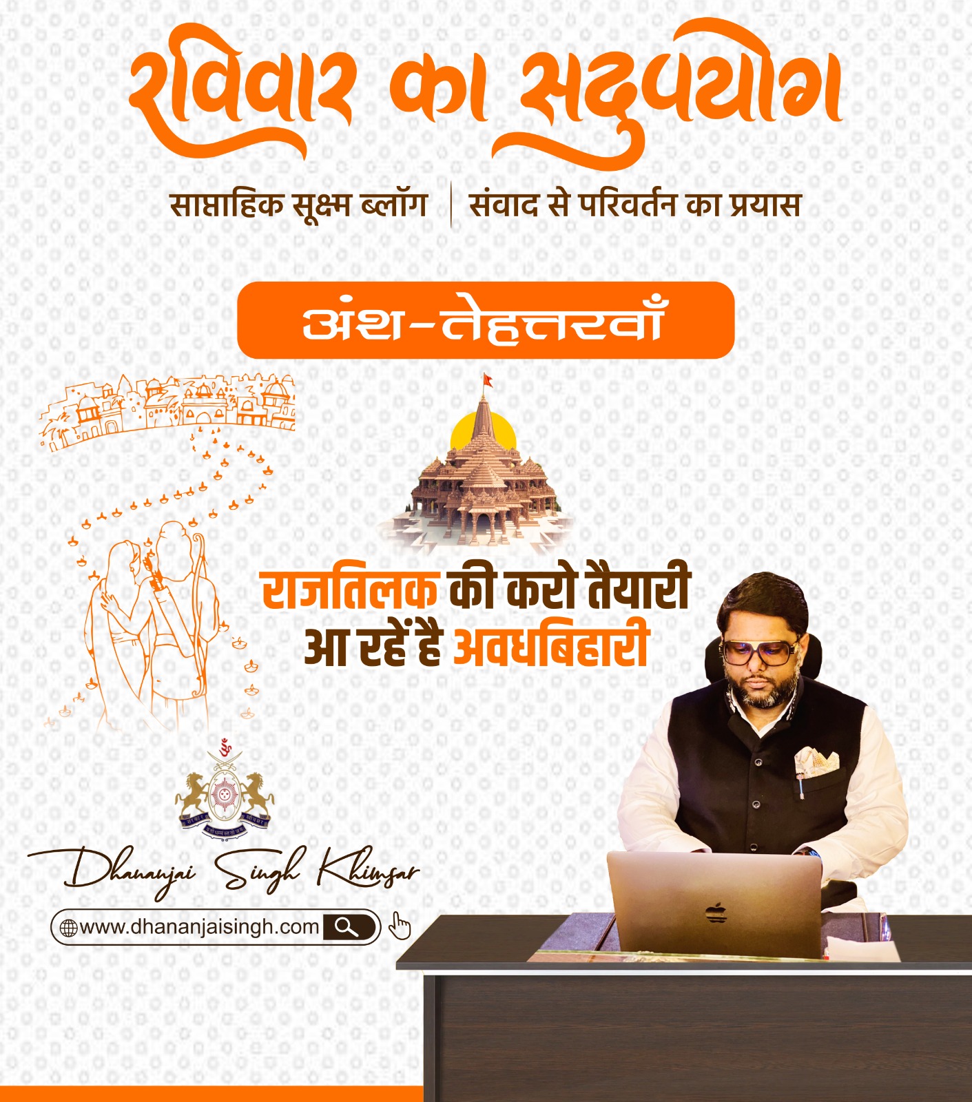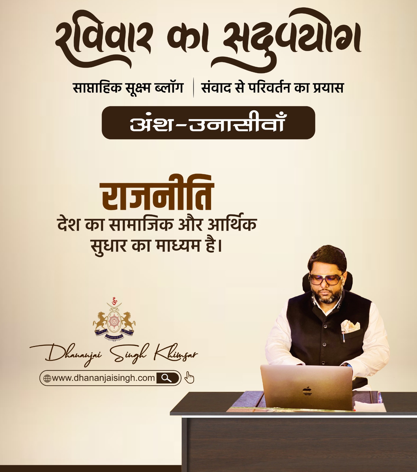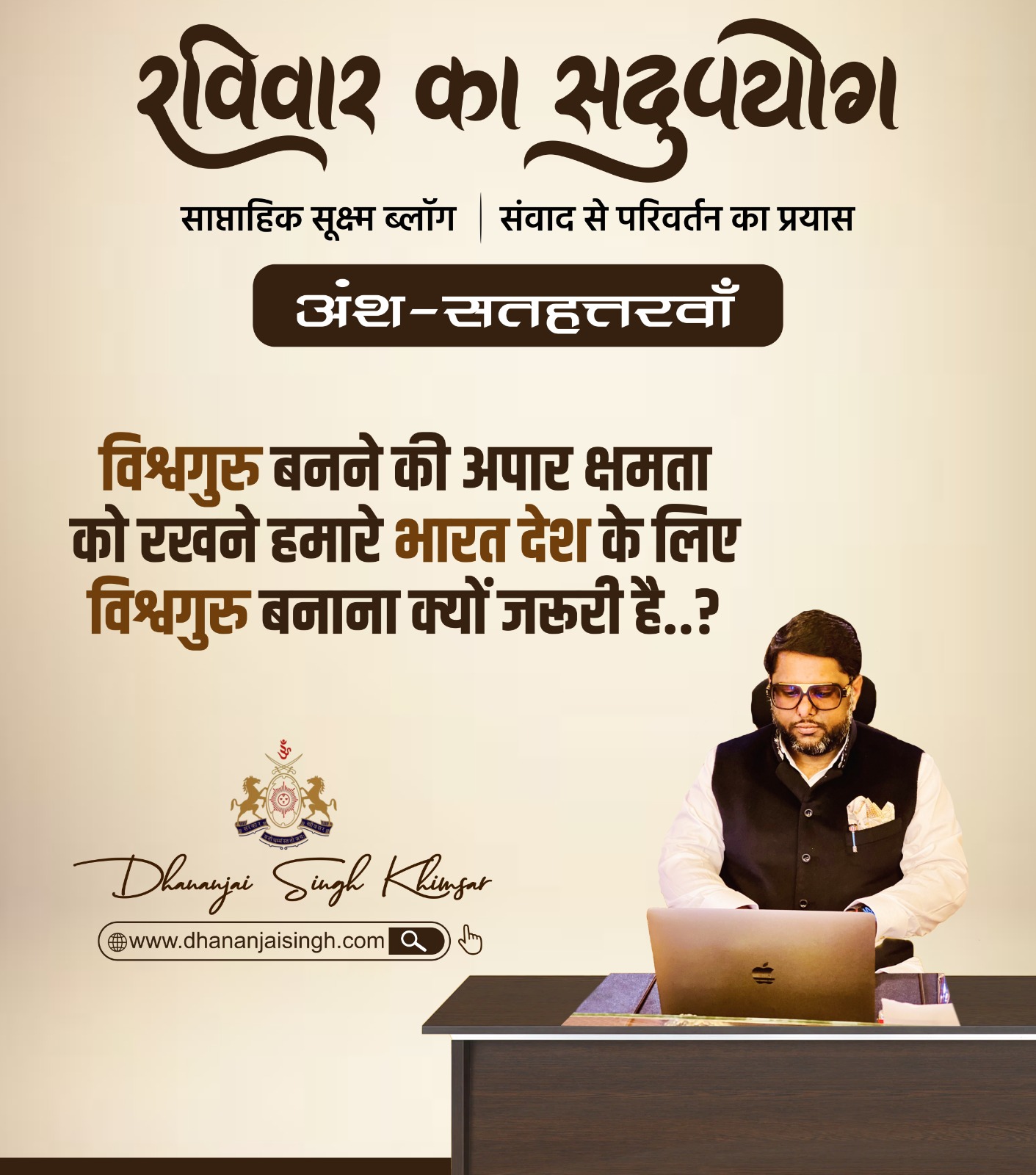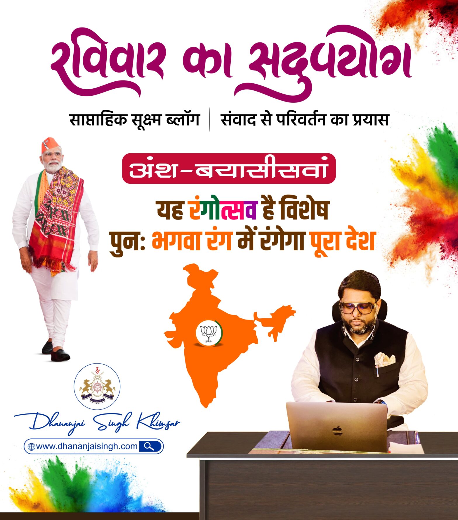 रविवार का सदुपयोग – अंश – बयासीसवां रविवार का सदुपयोग साप्ताहिक सूक्ष्म ब्लॉग | संवाद से परिवर्तन का प्रयास अंश – बयासीसवां यह रंगोत्सव है विशेषपुनः भगवा रंग में रंगेगा पूरा देश हमारी समृद्ध सांस्कृतिक विरासत का प्रतीक है होली और लोकतंत्र के महोत्सव के शुरुआत में आए इस रंगोत्सव से हमें देश के प्रति अपनी जिम्मेदारी निभाने का… Continue reading रविवार का सदुपयोग-अंश – बयासीसवां