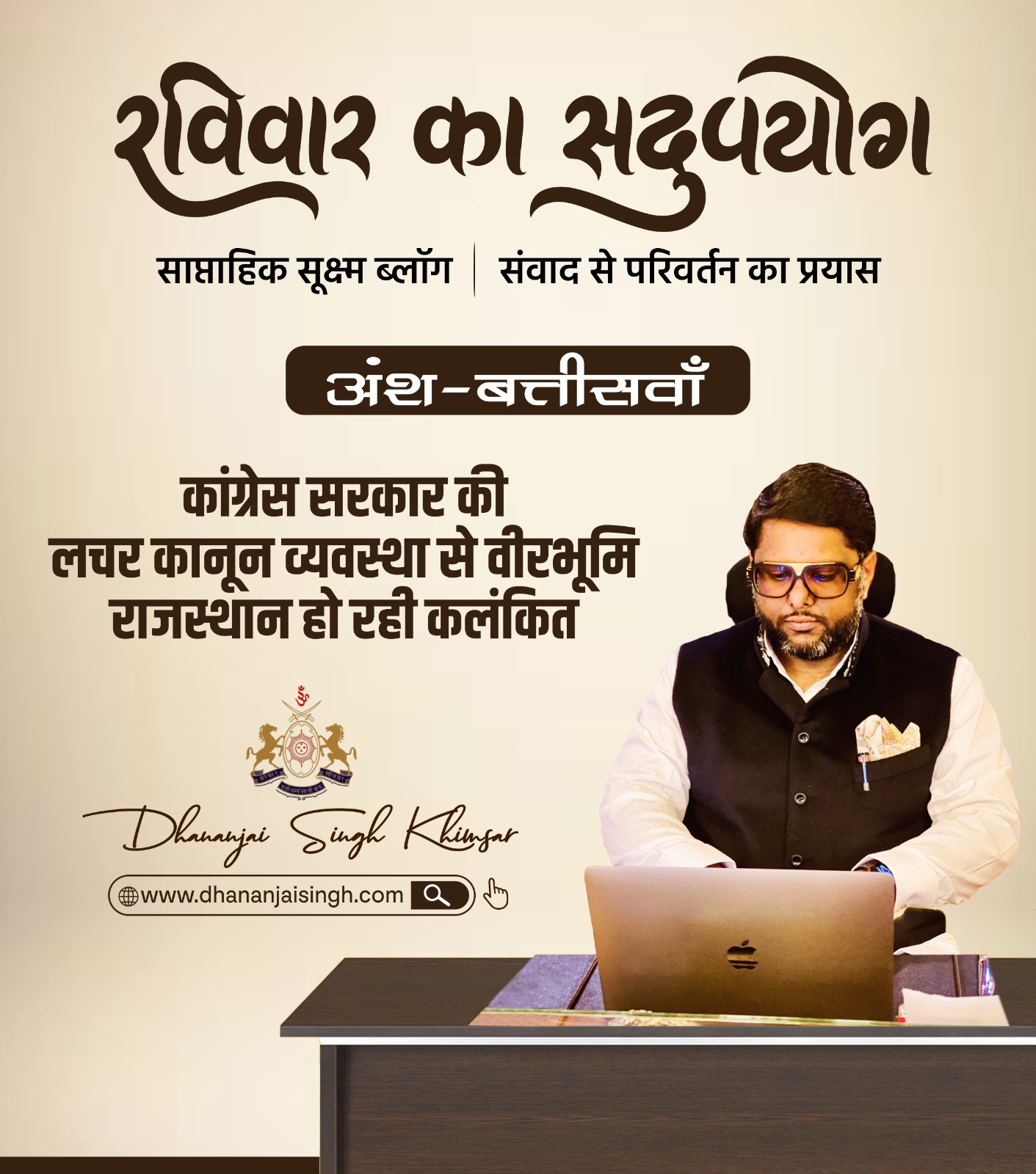 रविवार का सदुपयोग– अंश-बत्तीसवाँ रविवार का सदुपयोग साप्ताहिक सूक्ष्म ब्लॉग | संवाद से परिवर्तन का प्रयास अंश-बत्तीसवाँ कांग्रेस सरकार की लचर कानून व्यवस्था से वीरभूमि राजस्थान हो रही कलंकित बालोतरा की दुःखद घटना के पश्चात आज मेरे साप्ताहिक ब्लॉग के माध्यम से यह लिखना जरूरी था क्योंकि राजस्थान का यह विफल सिस्टम एक और जीवन लील चुका है।… Continue reading रविवार का सदुपयोग-अंश-बत्तीसवाँ