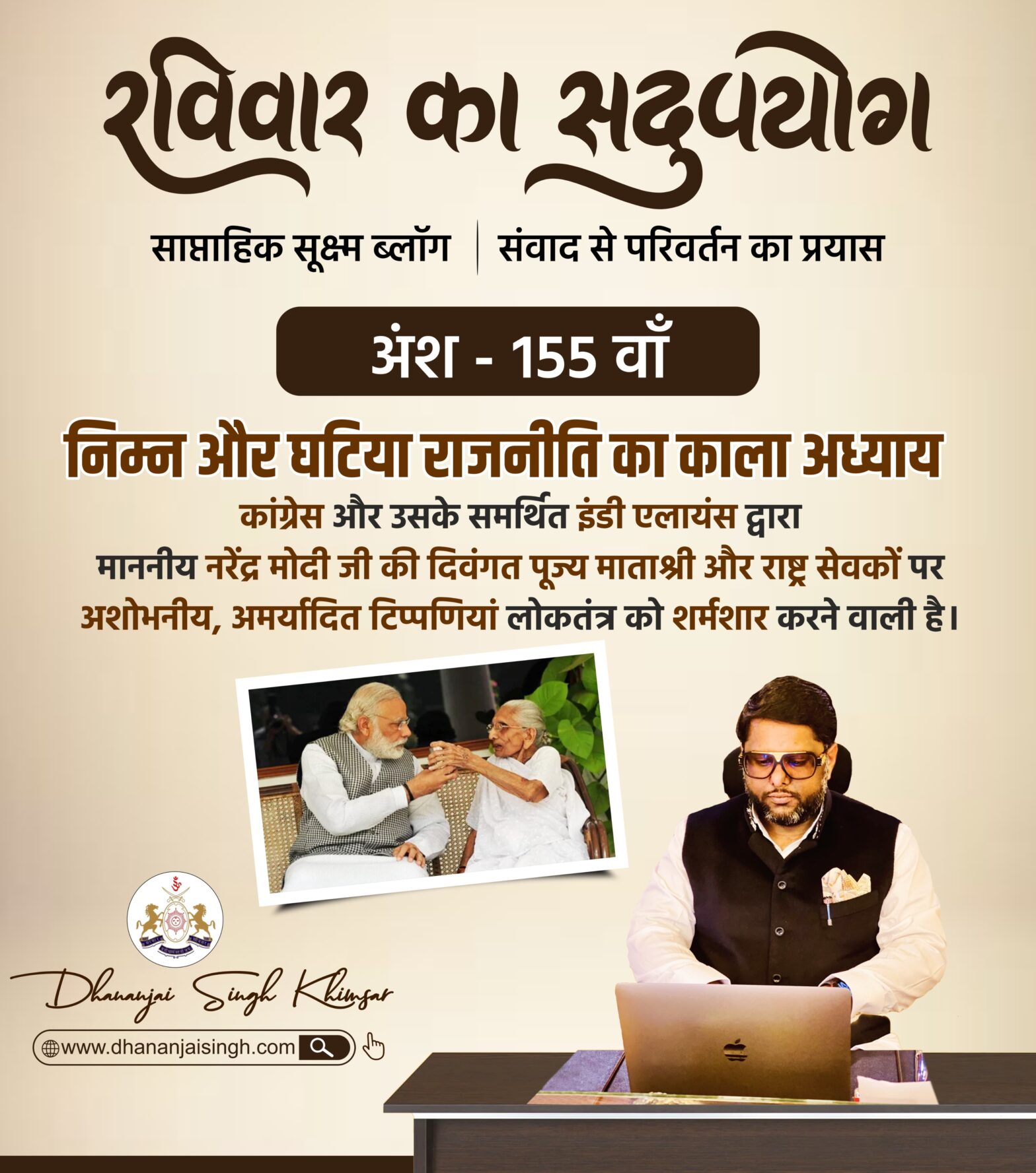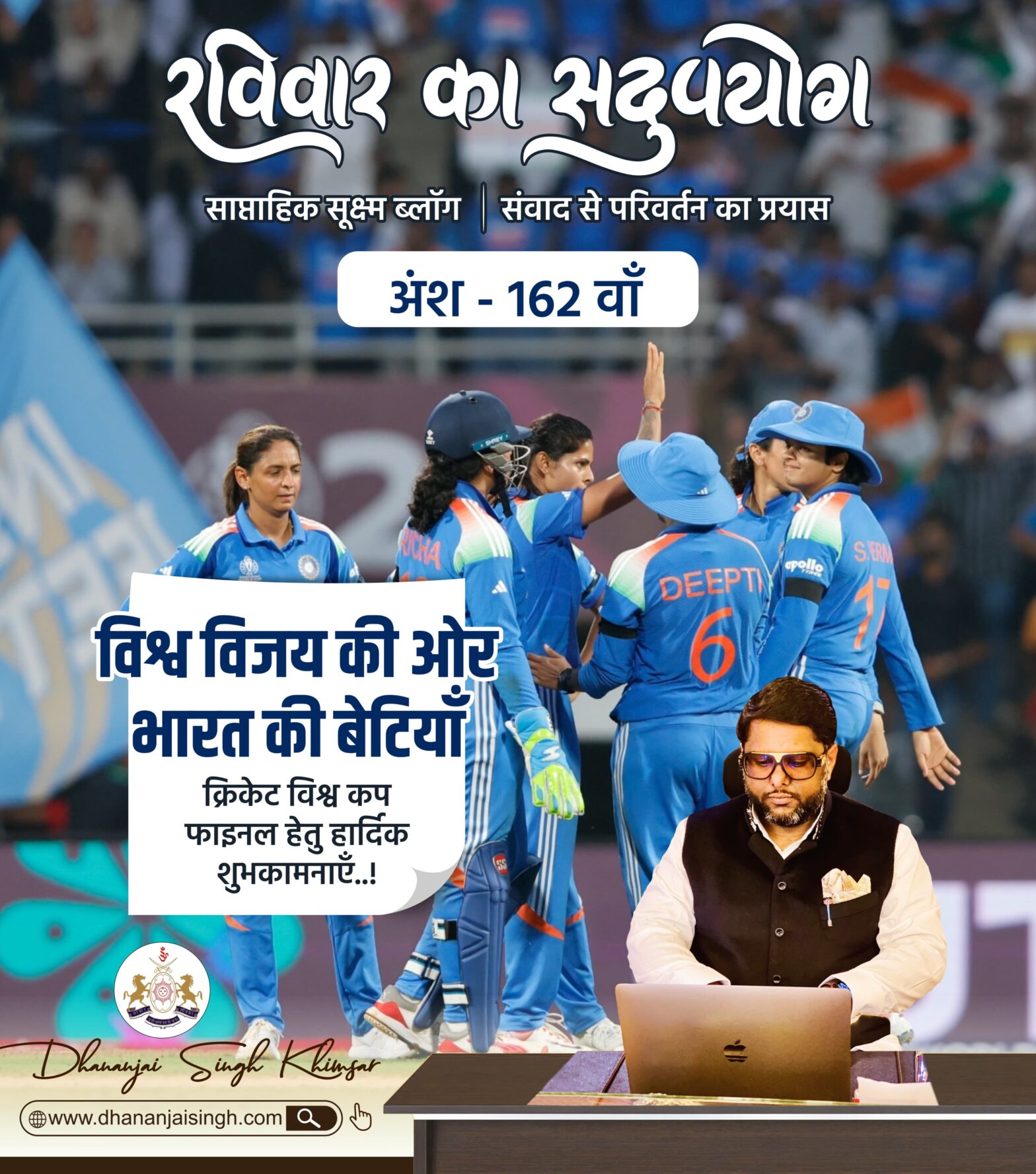 रविवार का सदुपयोग – अंश : 162 वाँ रविवार का सदुपयोग साप्ताहिक सूक्ष्म ब्लॉग | संवाद से परिवर्तन का प्रयास अंश : 162 वाँ विश्व विजय की ओर भारत की बेटियाँ : क्रिकेट विश्व कप फाइनल हेतु हार्दिक शुभकामनाएँ या देवी सर्वभूतेषु शक्तिरूपेण संस्थिता।नमस्तस्यै नमस्तस्यै नमस्तस्यै नमो नमः। जिस धरती पर नारी को शक्ति का स्वरूप माना जाता है, उस… Continue reading रविवार का सदुपयोग – अंश : 162 वाँ
